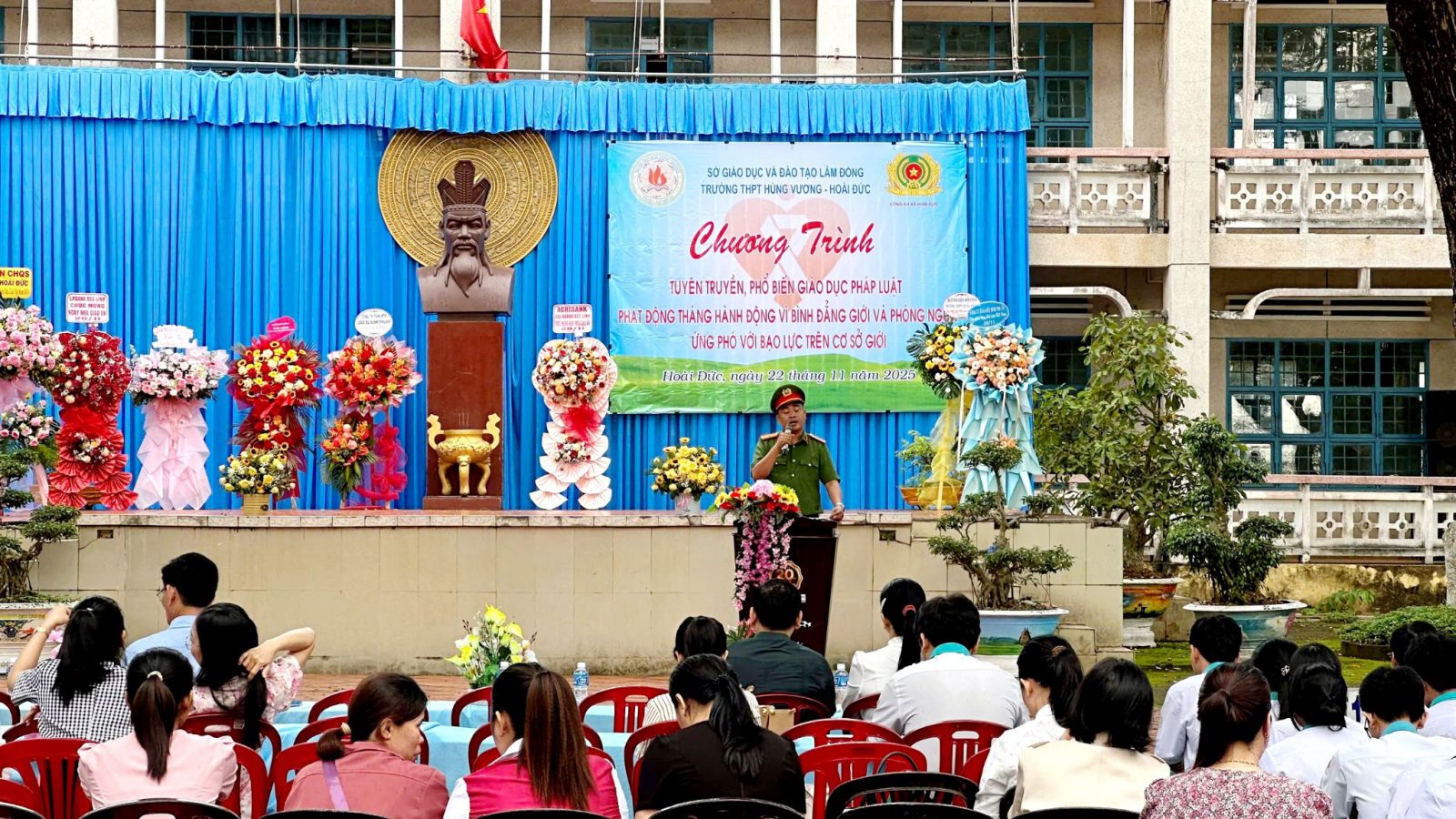 🌿 Sáng nay, Thứ Bảy ngày 22/11/2025, Trường THPT Hùng Vương – Hoài Đức phối hợp với Công an xã Hoài Đức tổ chức Chương trình Tuyên truyền, phổ biến, giáo dục pháp luật; Phát động Tháng hành động vì bình đẳng giới, phòng ngừa và ứng phó với bạo lực trên cơ sở giới.